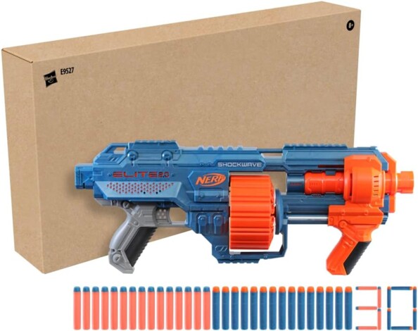- Incluye : 1 lanzador Nerf 2.0 Shockwave RD-15 et 30 dardos NERF Elite oficiales
